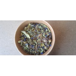 Composition : feuille de basilic citron, d'estragon, de thym citron, de thym orange. Graines d'aneth et fleurs de bleuets. 20 grammes